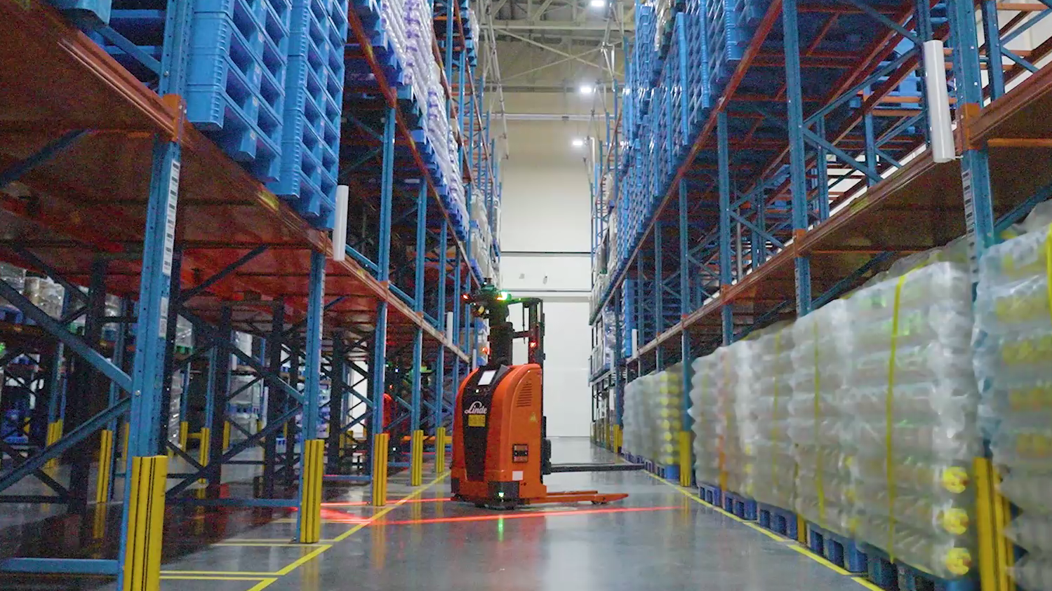 林德 L-MATIC 系列托盤堆垛機器人(負載 1200-2000kg)專為復雜物流場景打造。 其 360° 安全設計結合獨立安全模塊與多傳感器,可精準感知環境變化并避障。性能上,憑借 ±10mm 的高定位精度、1.5m/s的運行速度、以及行駛/轉向/提升動作同步技術和動態路徑規劃,實現高效流暢的堆垛作業。此外,其成熟的車載控制與調度系統支持多種通信協議,可無縫對接各類倉儲管理系統(WMS),并協同安全門、電梯、傳送線等設備,廣泛應用于產線配送、貨架存儲、物料上下架等任務。